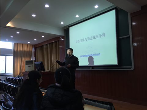 2015年12月2日上午10:00点北京航空航天大学外国语学院院长向明友教授应邀在三号楼3408教室发表学术演讲,外国语学院的相关老师、各级研究生、博士生、以其他单位的师生参加了讲座。 (责任编辑:admin)本次讲座的主讲人向明友教授是教育部新世纪优秀人才、北京航空航天大学蓝天学者特聘教授及博士生导师、教育部大学外语教学指导委员会副主任委员、中国语言教育研究会副会长、中国话语语言学学会副会长,国务院学位办第七届学科评议组成员。此次应我院王勇教授之邀初次来访我校,提供学术上的指导和建议,对于外国语言学院的各级学生来说都是一次难能可贵的学习机会。 此次讲座以“为语用化与语法化纷争辩”为题,从研究目的、基本概念、纷争所在、“sort of”案例、问题的解决、结论与启示6个部分展开。向教授用非常接地气的语言跟在座者讲解了语用化与语法化之间的纷争的渊源以及整个过程,并清晰明了地阐述了他做这个研究的原因和过程。让大家欢笑之余更深刻体会到高新科技语料库给学术研究带来的重大影响,以及逻辑思维在不管是生活还是学术研究领域的重要性。同时,向明友教授也向大家传递了他的学术观念“学术应该为生活服务,应该和生活密切相关”,并用亲身经历鼓励大家多做研究、多发论文。 整个讲座下来,向明友教授幽默风趣的语言以及对学术研究的坚持与热爱给在场的每一位留下了深刻的印象,给大家以思考和启迪。 ![]() |