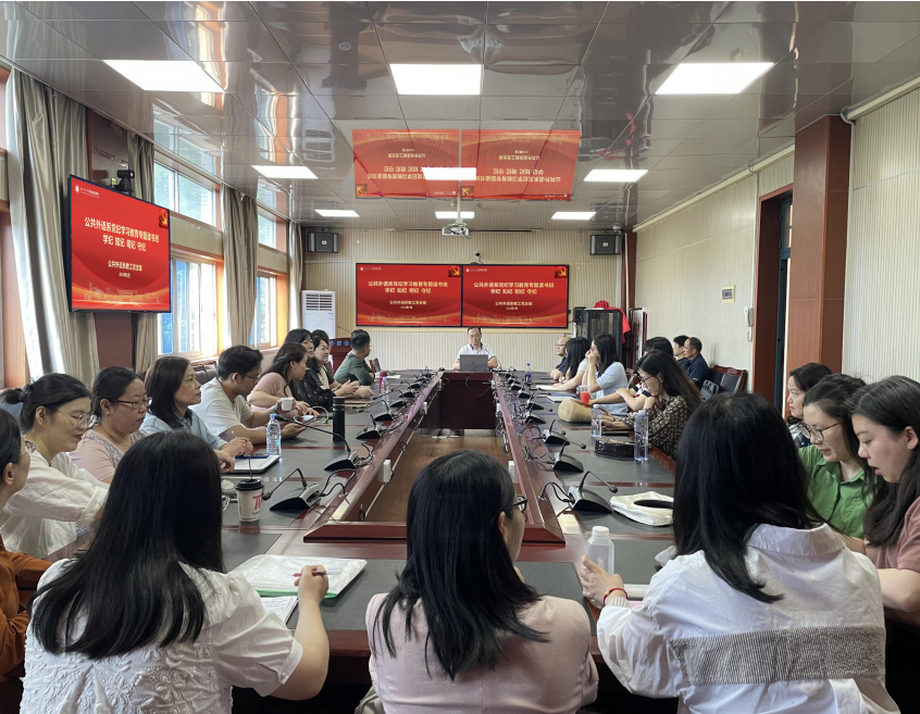 为深入学习贯彻习近平总书记关于党纪学习教育的重要讲话和重要指示精神,推动党纪学习教育走深走实,5 月 31 日下午,公共外语系教工党支部在学院党委的指导下集中学习新修订的《中国共产党纪律处分条例》。会上,支部书记高苏领学了条例的修订背景、总体框架和主要内容,并运用近期部分高校一些典型警示教育案例,就“六项纪律”进行了一一解读,帮助全系党员教师更好把握“六项纪律”的主旨要义和规定要求。党员老师们也踊跃分享了自4月开展党纪学习专题教育以来的心得体会。支部书记高苏最后强调全体党员教师要把党纪学习教育与立德树人工作结合起来,坚持把师德师风和党纪学习教育融入日常、抓在经常,为公共外语系高质量发展提供坚强保障,努力培养更多让党放心、爱国奉献、担当民族复兴重任的时代新人。