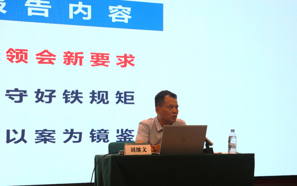 刘继文重点讲授了《中国共产党纪律处分条例》《事业单位工作人员处分规定》等条例和规定,并结合实际案例讲解了高校存在的“十大风险”和违反“六项纪律”的具体情形。他希望全院教师要牢记六个坚守,即坚守政治纪律的高压线、坚守组织纪律的红线、坚守廉洁纪律的底线、坚守群众纪律的生命线、坚守工作纪律的警戒线、坚守生活纪律的防线,自觉做忠诚干净德艺双馨的高素质教师。