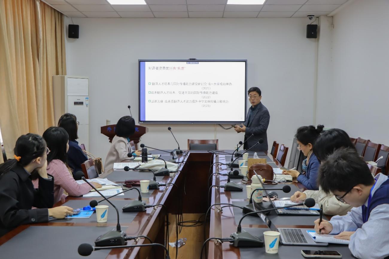 党争胜教授在论坛上发表了题为“加强翻译专业人才培养,助力国际传播能力提升”的主旨演讲。他从宏观角度出发,强调新时代翻译工作者肩负着提升中国国际传播能力、向世界讲述中国故事、阐释中国式现代化的发展理论与实践的历史使命。党教授认为,翻译不仅是国际传播的前沿工作,也是最关键的手段之一,对中国国际传播效果具有决定性影响。因此,高层次翻译人才的培养和高水平翻译团队的建设成为我国翻译学科发展的核心任务。他最后强调,在翻译技术不断取得突破的数字化时代,译者的综合素养显得尤为重要。