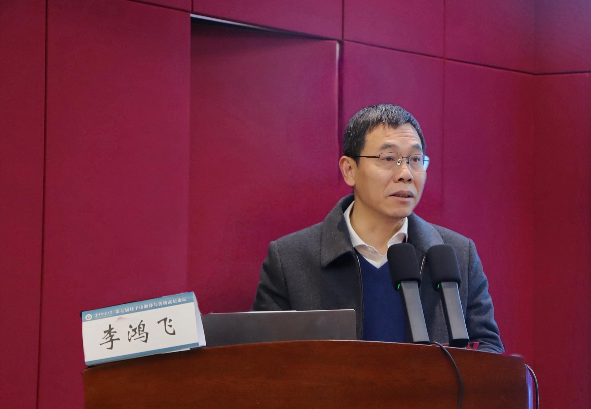 会议首先由华中师范大学李鸿飞副校长致欢迎辞。他对与会嘉宾的到来表示了热烈的欢迎,并简要介绍了华中师范大学的办学历史、学科发展和教师队伍等基本情况。李校长特别强调了华师学者在人工智能和翻译事业中的显著贡献,并指出在科技革命和人工智能迅猛发展的当下,翻译承担着“讲述中国故事,传播中国文化”的重要任务。