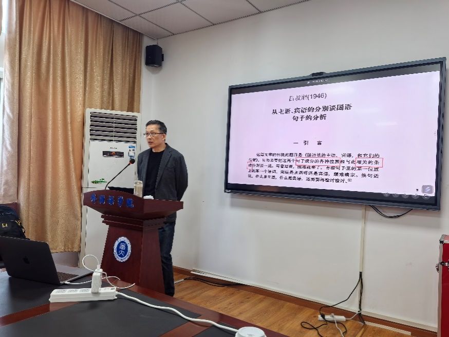 2025年3月17日上午,加州大学洛杉矶分校(UCLA)亚洲语言文化系教授、中文部主任陶红印教授,应邀到访我院,以“能量格式的语体与跨语言交际范畴探讨”为主题,在3407报告厅进行了一场别开生面的学术报告,本次学术报告由外国语学院教授柯贤兵主持,外语学院的部分教师和硕博士参加了报告,报告厅座无虚席。