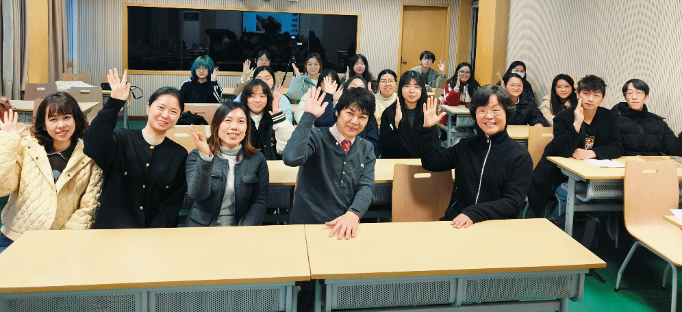 在所有课程结束后,同学们为堀田教授拍摄了感谢视频。随后,堀田教授接受了外国语学院“语思”融媒体中心的专访。在采访中,他细致分享了如何开展语言学、法学与心理学的跨学科研究,以及出版心理学著作的心路历程。除此之外,堀田教授还畅谈了此次中国之行的所见所感。他表示,作为一名武侠迷,此次能够来到中原地区,亲身感受中国文化,他感到无比兴奋。同时,他也期待未来能与我校有更多的学术交流机会,再续“中原”之缘。