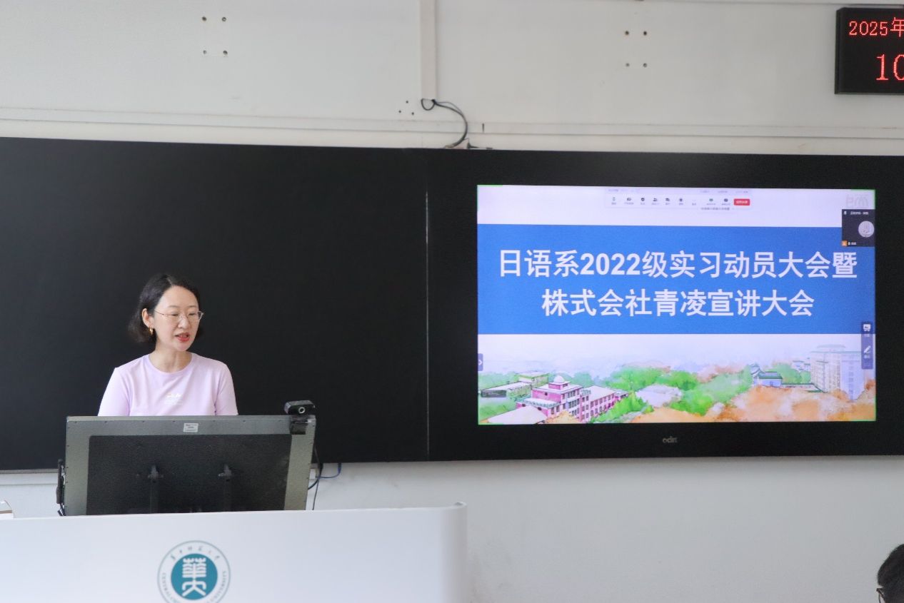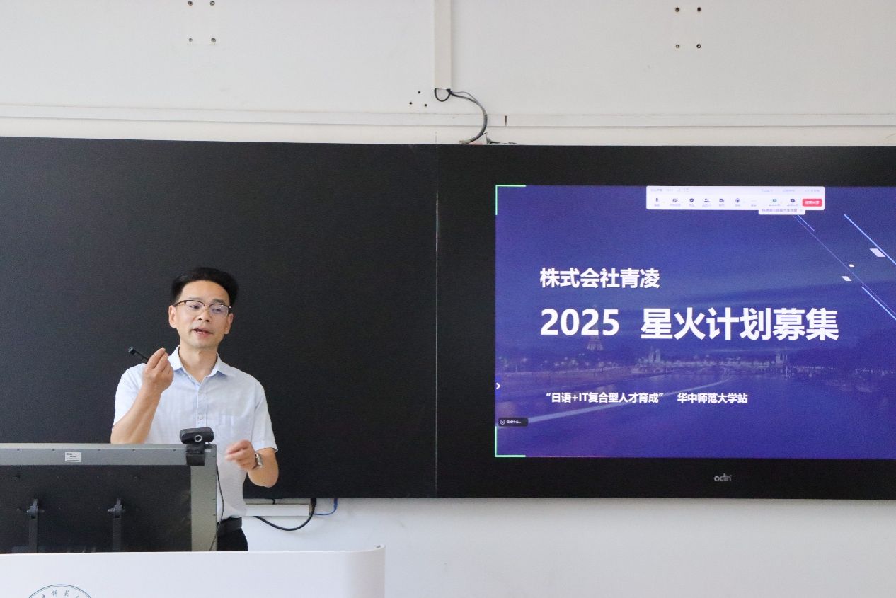5月19日上午,我院举办以"株式会社青凌2025星火计划人才募集——'日语+IT复合型人才培养' "为主题的日语系实习动员大会,株式会社青凌总经理张小光先生应我院邀请莅临访问并展开专题讲座。株式会社青凌总经理张小光先生、外国语学院日语系系主任李俄宪教授、日语系金英丹及娜仁图雅教师,及2022级日语系全体本科生参加本次活动。金英丹教师担任本次讲座主持人。