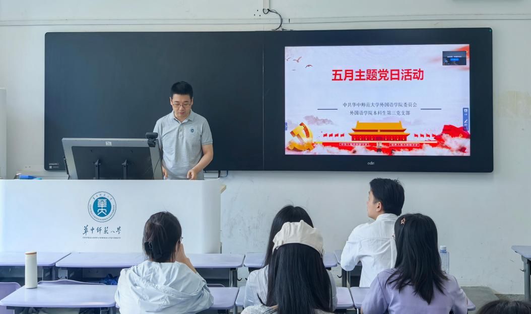 为进一步增强支部党员党性修养,加强理论学习,2025年5月27日,华中师范大学外国语学院本科生第三党支部于3212教室召开五月主题党日活动。外国语学院副院长王佳同志参加并领学,会议由学生党员许云烟主持。