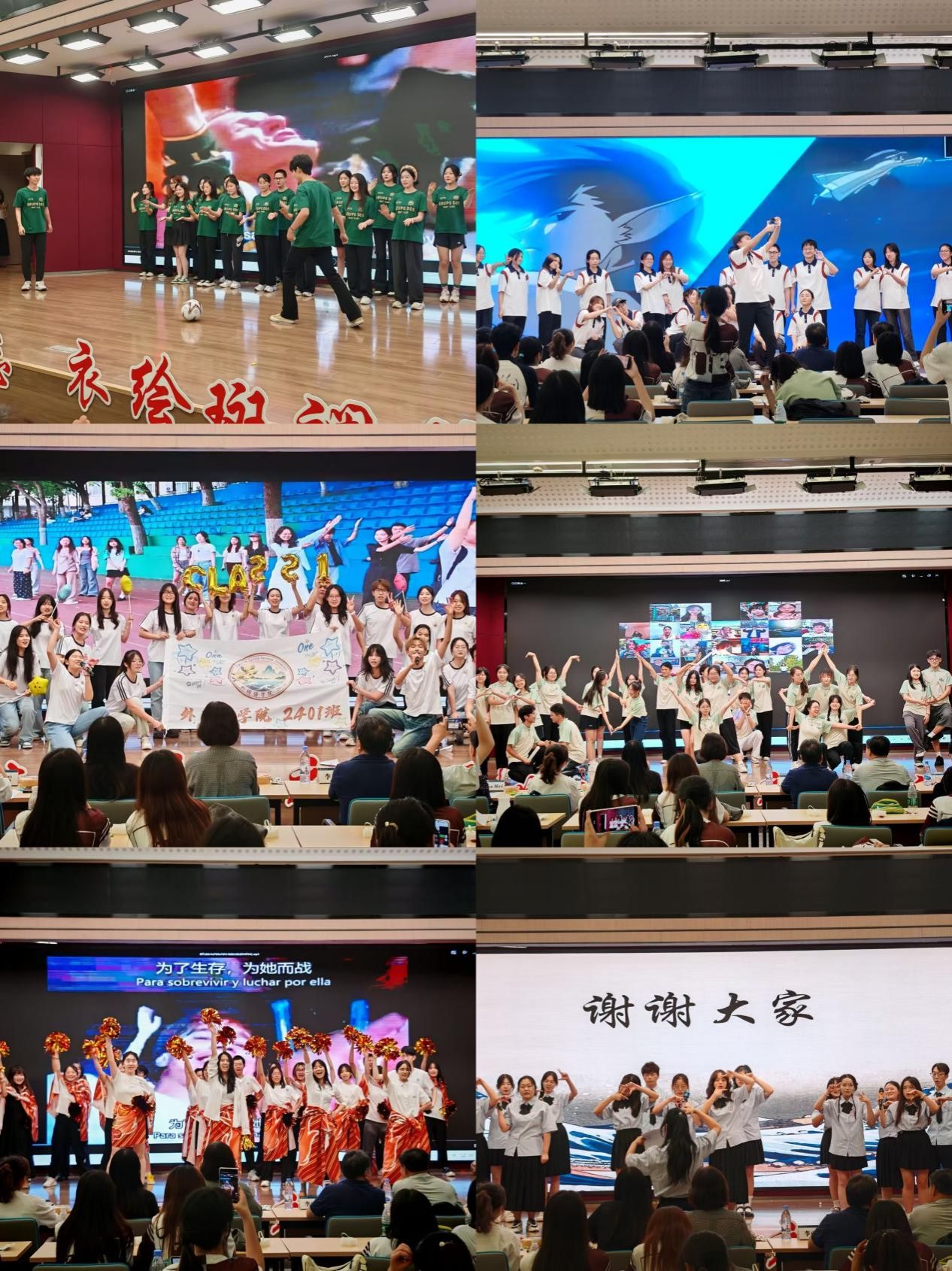 在比赛中,各班以独具匠心的形式展现了青春活力与集体精神。有的班级通过活泼舞蹈或歌曲串烧传递青春洋溢的风采,有的班级以创意班徽设计诠释团结奋进的班级理念,还有班级将相声、弗拉明戈舞等多元文化元素融入表演,配合热情洋溢的歌舞和乐器展示,点燃全场氛围。各班节目形式新颖多样,既有流行文化的巧妙融合,也有国际特色的精彩呈现,在动静交织的舞台上共同绘就了一幅团结、创意与激情并存的青春画卷。