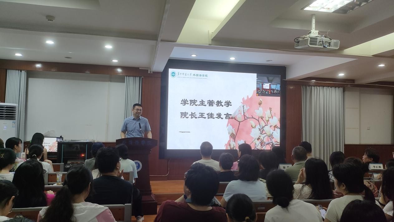 7月3日,华中师范大学外国语学院2026届全体学生实习动员大会在3408、3504 教室隆重举行。外国语学院党委书记麻旎、党委副书记陈哲、副院长王佳,华师校友河南省实验中学余彦洁,与会实习指导教师代表方幸福、何举纯、李正林、徐泉、陈浪、袁英、潘曙光、荣娇婷、韩全会、金英丹、李莹、周萌、于杨、曾思齐、李金督、吴波、张紫韵及2026届本科生、研究生齐聚一堂,共话实习成长与未来发展。大会由2026届英语系本科年级主办,2026届英语系本科生吴双彤主持大会。