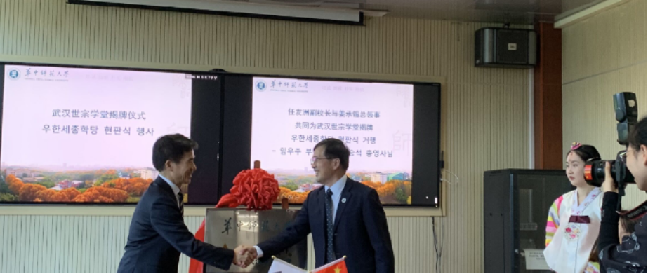 任友洲副校长和姜承锡总领事为武汉世宗学堂揭牌