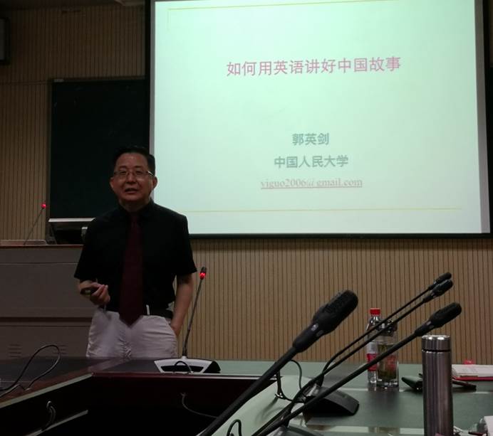 2018年5月9日晚上,中国人民大学郭英剑教授应邀做客外国语学院,并为我院师生做了一场题为“如何用英语讲好中国故事”的讲座。
