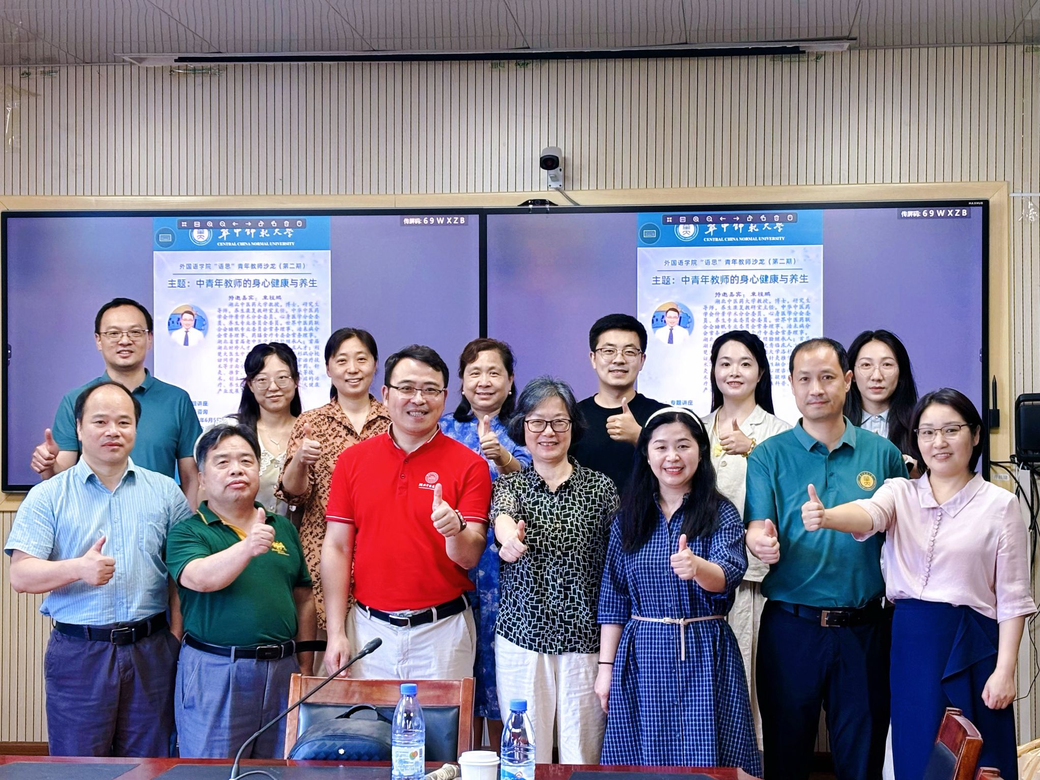 2025年6月5日上午,由外国语学院工会组织的第二期“语思”青年教师沙龙在3402会议室举办。本次活动的主题为“中青年教师养生与健康”,邀请了湖北中医药大学章程鹏教授作为特邀嘉宾。外国语学院党委书记麻旎、工会主席何卫华、以及我院广大教师参与了此次沙龙,活动由外国语学院党委副书记罗舰主持。