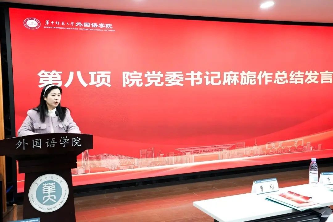 麻旎作闭幕总结发言。她指出,本次会议是在深入贯彻习近平新时代中国特色社会主义思想、党的二十届四中全会及学校第十三次党代会精神,推进“十五五”规划的关键节点召开的重要会议。回顾上次教代会以来的工作,学院紧扣立德树人根本任务,办学能力与社会声誉稳步提升。学院工会围绕中心工作履职尽责,在维权服务、自身建设上成效显著,凝聚起“外院人”共促发展的合力。她强调,2026年是校院“十五五”规划开局之年,学院将锚定目标、坚守方略,为“五个华大”建设赋能。结合习近平总书记关于群团工作的重要论述,她对学院工会提出三点要求:一是聚焦提质进位,紧扣“双一流”及“1510”计划;二是强化桥梁纽带作用,健全民主机制、精准服务;三是深化自我革新,以数字化赋能服务、打造特色品牌。麻旎号召代表们宣传贯彻会议精神,全体教职工凝心实干,共推学院高质量发展,为学校建成教师教育领先的世界一流大学贡献外院智慧与力量。
