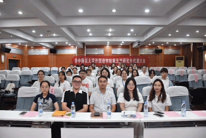 2024年9月20日下午14:30,华中师范大学外国语学院2024届研究生代表大会于3号楼3504报告厅举行。我院党委书记麻旎,党委副书记陈哲,团委书记吴波老师,研究生辅导员李金督老师,研究生辅导员李英洁老师,校研究生会主席团成员吴一娜出席本次研究生代表大会。本次大会全院共52名学生代表参加。