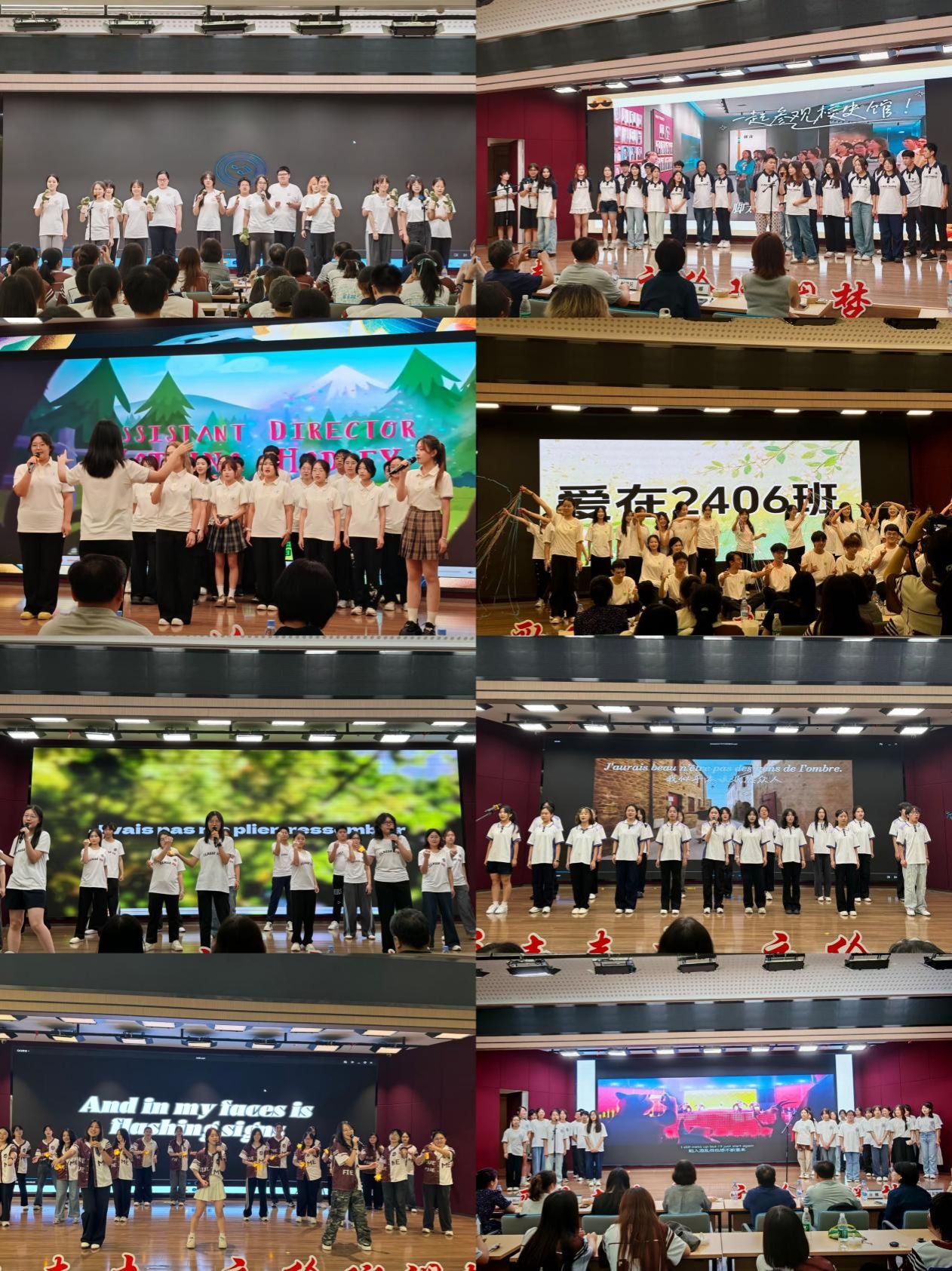 在比赛中,各班以独具匠心的形式展现了青春活力与集体精神。有的班级通过活泼舞蹈或歌曲串烧传递青春洋溢的风采,有的班级以创意班徽设计诠释团结奋进的班级理念,还有班级将相声、弗拉明戈舞等多元文化元素融入表演,配合热情洋溢的歌舞和乐器展示,点燃全场氛围。各班节目形式新颖多样,既有流行文化的巧妙融合,也有国际特色的精彩呈现,在动静交织的舞台上共同绘就了一幅团结、创意与激情并存的青春画卷。