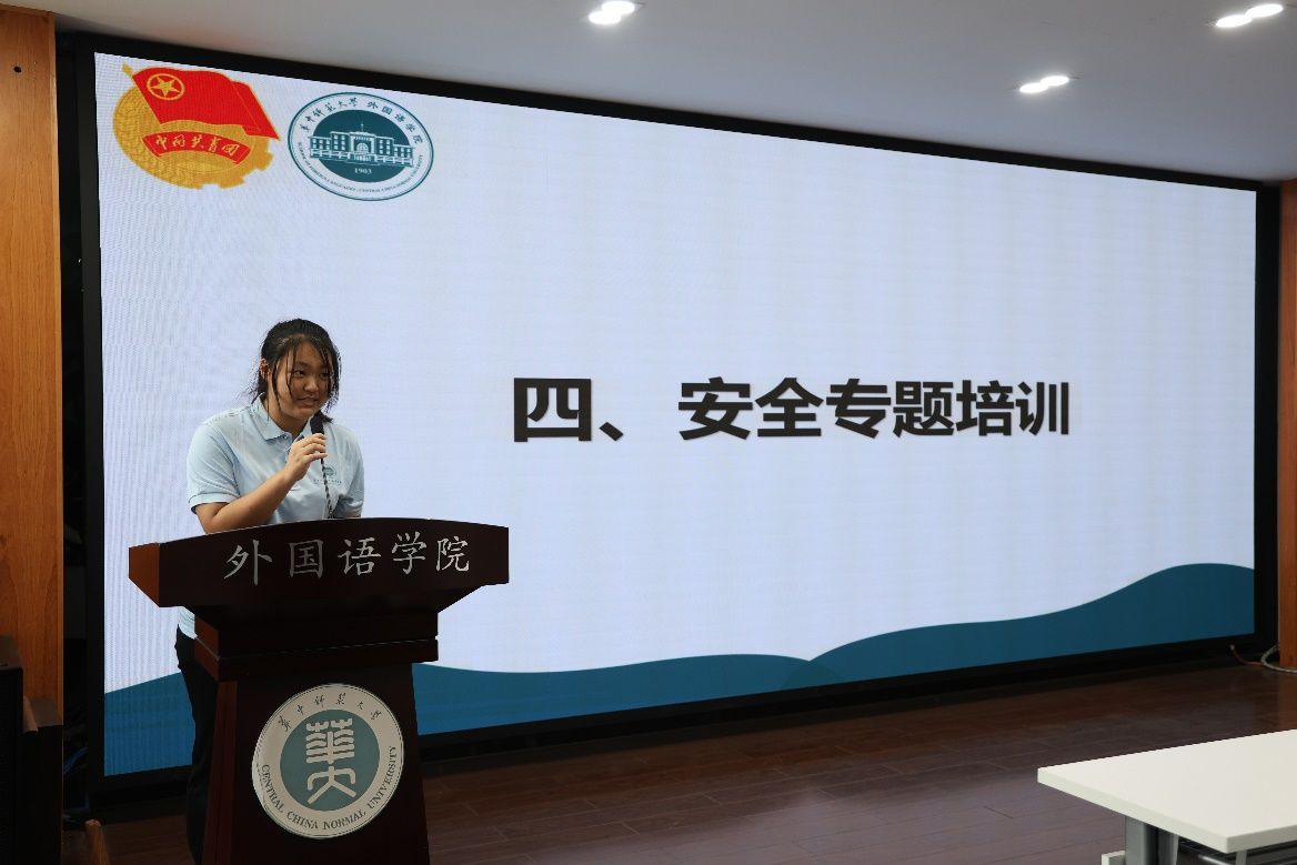 学院团委劳动教育实践中心负责人宇文雪楠作安全专题培训。培训内容涵盖交通出行、人身财产安全、食品安全与健康防护、应急处理以及尊重当地文化习俗等多个关键维度,为即将启程的实践之旅筑牢安全防线。