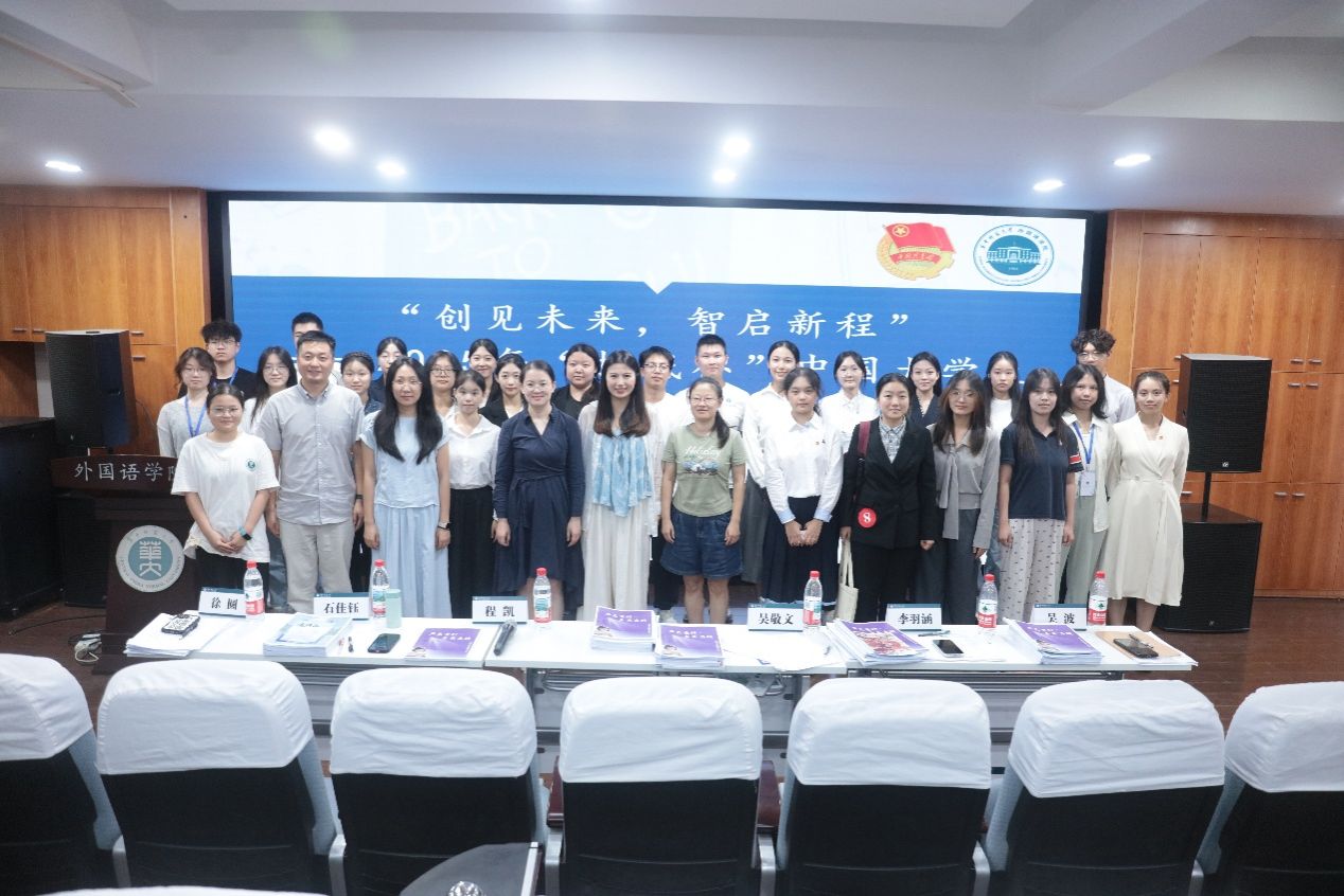 最后,评委与参赛选手合影留念,本次院内选拔赛圆满落幕。本次比赛激发了学生创新创业热情,并通过专业点评与指导不断提升团队的竞争力与综合实力,充分展现外院学子立足专业、服务社会的创新视野,彰显学院实践育人的理念。未来,外国语学院将持续搭建创新创业平台,助力青年学子在“挑战杯”等赛事中勇攀高峰,书写青春华章。