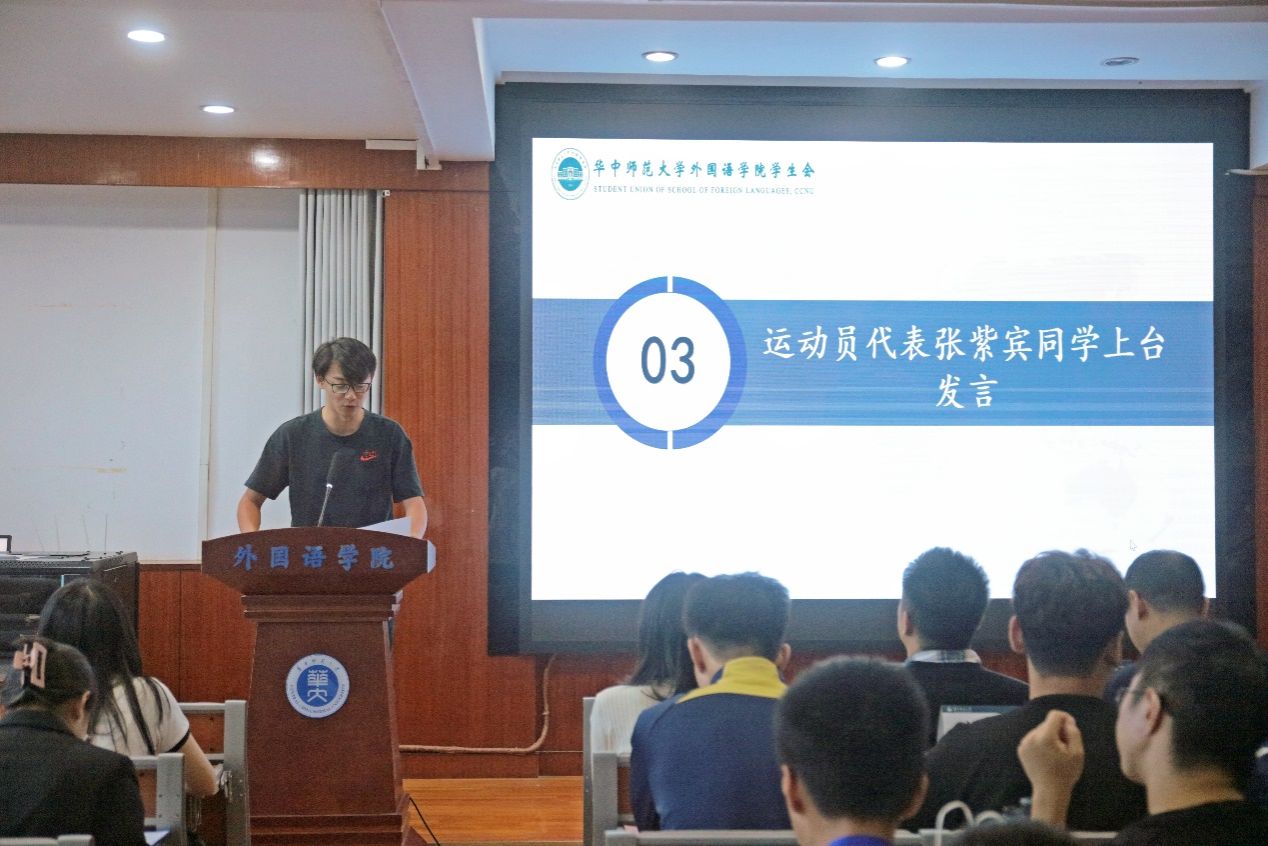 学院团委、学生会执行主席罗诗怡介绍了往年外院运动会成绩,汇报了今年运动会各项筹备情况。她鼓励全体同学继续发扬顽强拼搏的优良传统,科学训练,积极备战,充分展现外院学子的青春风采和体育精神。