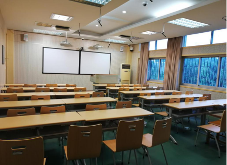 第二课堂训练实验室配有语音处理系统和高保真环绕音响设备,可同时容纳60-70人,主要承担专业外语语音、会话等实验课程,同时也是学院国际化课程和各类学术讲座的主要举办场所。该实验室的建设并未采用传统教室的固定课桌形式,以方便学生和教师在轻松愉悦的环境中进行学术交流,是外语专业学生汲取课外知识和教师们进行学术探讨的理想场所。