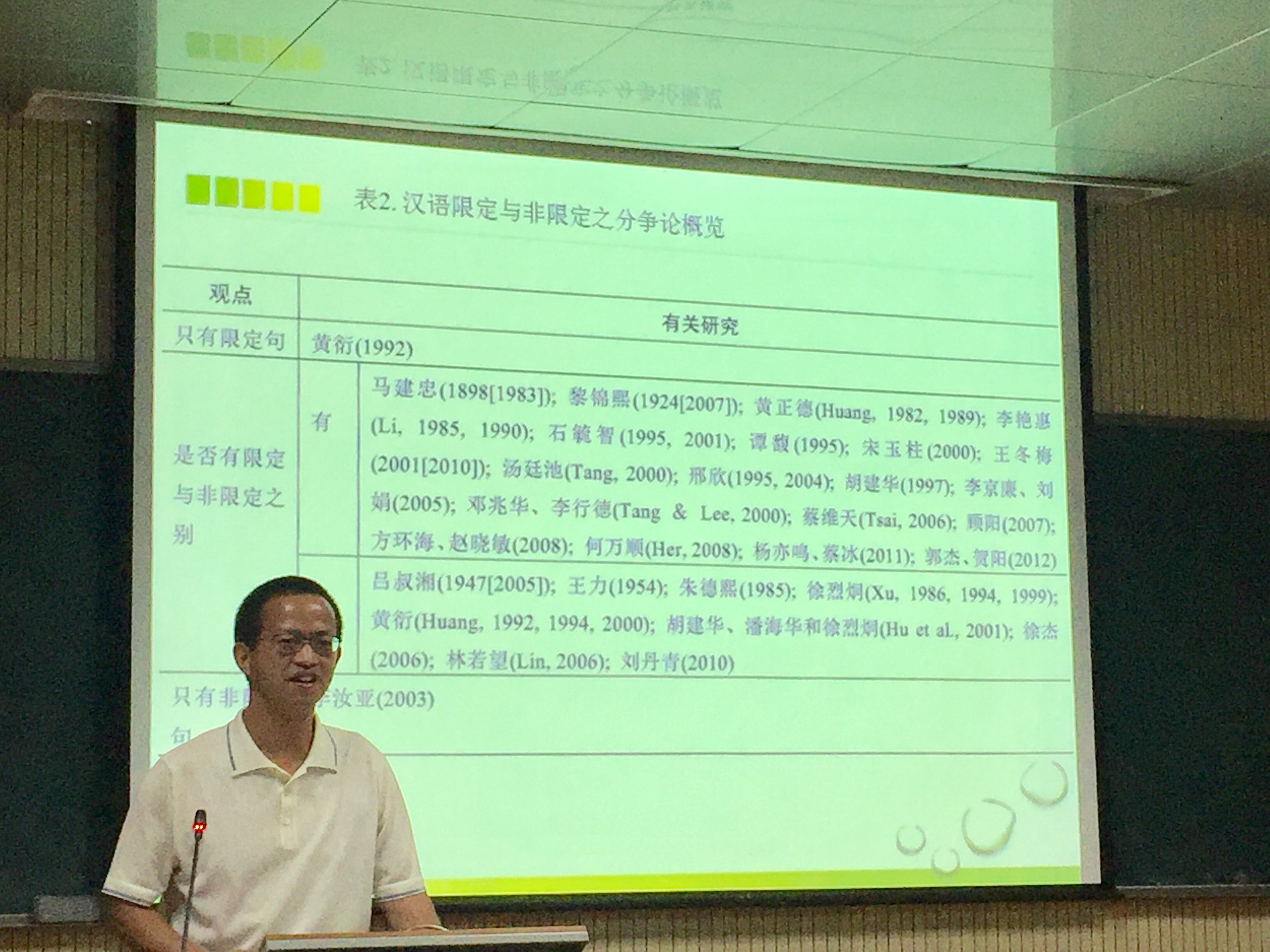 2017年6月5日上午,应外国语学院邀请,上海交通大学博士生导师杨炳钧教授在3402报告厅作了一场题为“英汉动词的限定性”的学术讲座。讲座由外国语学院副院长王勇教授主持,外国语学院部分教师、语言学方向博士、硕士研究生聆听了本次讲座。