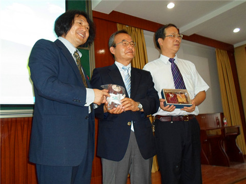 讲座前,李云书记代表全院对樋口清秀教授的到访表示热烈欢迎,而樋口教授也为外国语学院准备了精美礼品。日语系同学也献花对樋口教授表示欢迎。