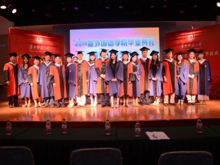6月16日上午,外国语学院2014届毕业生毕业典礼暨学位授予仪式在大学生活动中心五楼举行。华中师范大学校党委副书记谢守成、外国语学院院长廖美珍、院党委书记李云、副院长李俄宪、副院长高晓芳、副院长罗良功、院党委副书记张静以及各系系主任出席。400多名本科生和研究生毕业生参加。毕业典礼由2014届毕业生王滢琪主持。