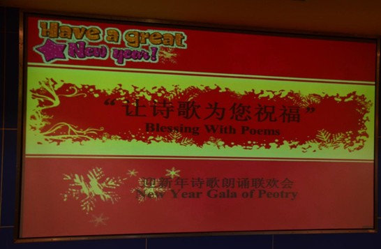 最后,外国语学院副院长罗良功教授作了总结讲话,并用中英文朗诵诗一首,表达新年祝愿。2013年12月17日21时30分,“让诗歌为您祝福——迎新年诗歌朗诵会”圆满落幕。