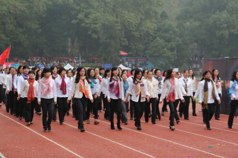 2013年10月31日上午8点整,华中师范大学2013年运动会在佑铭体育场如期举行。外国语学院组成代表队,分别参加了运动会的入场式和教工太极拳表演。