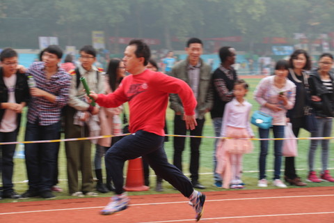 在31日上午进行的教工组的比赛中,外国语学院代表队旗开得胜,战绩辉煌:在教工混合组跳绳比赛中,李科峰老师、杨畅老师、于弋老师、张慧老师、张乐老师、朱卫红老师、李雪芬老师、高晓芳老师、余文都老师、娜仁图雅老师组成外院跳绳联合队,取得全校第七名记2分的好成绩。在教工组8人50米迎面接力比赛中,张强老师、方幸福老师、李国庆老师、杨畅老师、张慧老师、周丽江老师、谭娅老师、王雅菲老师组成外院田径“梦之队”,大家配合默契,不畏强手,取得了全校第二名记7分的不俗战绩。