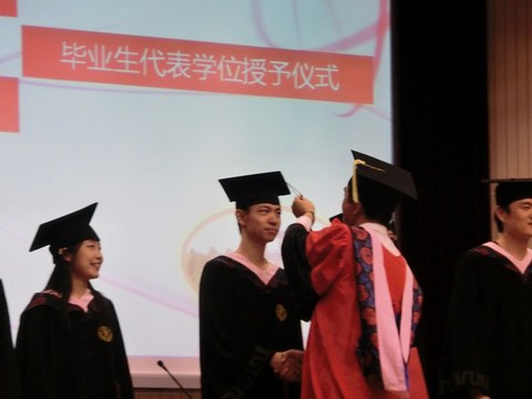 毕业生精心制作的毕业祝福视频将整个典礼的气氛推向了高潮。视频的开始以漫画速写的方式再现了大学四年中一些令人记忆深刻的片段,随后送来了来自领导、老师、辅导员们的祝福,引来了毕业生阵阵热情的欢呼和热烈的掌声。
