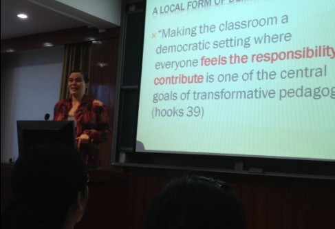 2013年6月7日上午10:00-11:30,艾克博士在外国语学院3408报告厅为我院师生举行了一场题为“The Participatory Classroom, Where Every Voice Matters! ”的讲座。 我院部分教师、硕博士研究生、本科生及访问学者参加了本次讲座。 艾克博士是美国弗莱明翰州立大学副教授、比较文学研究方面的专家,曾多次来华为我院师生作讲座。