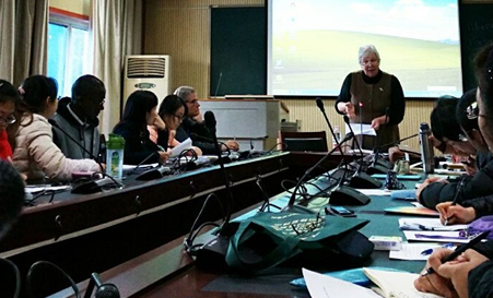 2015年12月7日下午,英国班戈大学英语系海伦·威尔科克斯(Helen Wilcox)教授应邀在外国语学院3402报告厅做了题为“边界与越界:莎士比亚喜剧中的女性(Boundaries and Transgression: Women in Shakespeare's comedies)”的学术报告。本次讲座由外国语学院方幸福教授主持,英语语言文学方向的硕士研究生、博士研究生、访问学者以及我院部分教师聆听了此次讲座。