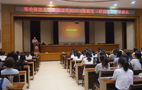 9月4日晚上7点,我院2016级研究生开学典礼在校科学会堂隆重举行。院党委书记李云、院长罗良功、副院长李俄宪、副书记张静、英语系系主任方幸福、俄语系系主任刘永红、法语系系主任杨芬、韩语系系主任池水涌、外国语言学及应用语言学研究所主任王勇、翻译研究中心主任胡德香、教师教育研究中心主任闫春梅等出席了开学典礼,典礼由张静副书记主持。