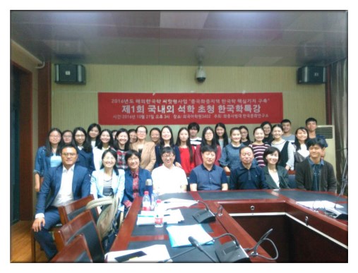 随后在答疑环节,学生们就韩语语法学习中遇到的疑惑向金基石教授提问,金教授一一作答,气氛活跃。学生们从这次讲座中受益良多,对于韩国语的特点有了更加深入的认识。 最后金基石教授与出席本次讲座的全体成员一起留影纪念,大家都对金基石教授致以诚挚的谢意,至此本次讲座圆满落幕。