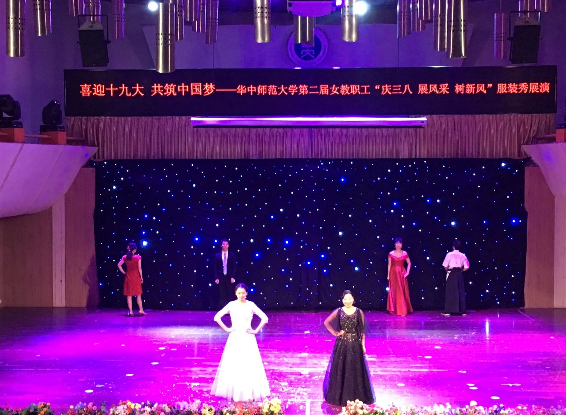 3月4日下午,华中师范大学第二届女教职工“庆三八展风采 树新风”服装秀展演在音乐厅举行。我院获颁“全国五一巾帼标兵岗”和“ 湖北省女教职工建功立业标兵岗”两项国家级、省级大奖。6位教工代表学院参加服装秀展演,最终获得“最佳风采奖”。 本次展演由校工会主办,共有30个单位参赛,参与教职工达300多人。我院展演由谢瑾老师组织,石桥一纪、王霞、周易、成雯,潘英子、全先行六位老师代表学院参加此次展演。学院党委书记李云与工会主席张际标及学院老师们到现场加油助威。