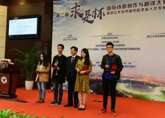 “求是杯”国际诗歌创作与翻译大赛面向全球高校本科生、研究生、留学生,参赛面广,影响较大。此次大赛征稿自2016年9月30日起至2017年1月10日止,共征集来自11个国家的学生的参赛作品2976件,最终只有72件获奖,获奖比例为2%。 高手如云的赛事伴随着的往往是巨大的压力。“每一次的成功都需要背后十万分的努力”。这次高显鑫同学的表现再一次证明了这句话。对于诗歌翻译创作中遇到的困难,他感慨道:“平时喜欢翻译,尤其偏爱诗歌翻译,对诗歌形与意的推敲使得翻译难度加大,但同时也使翻译的乐趣倍增。求一词而不得的无奈与偶得妙语的喜悦,只有译诗者才更懂。没有最好,只有更好。翻译,是永不完美的艺术。” 据悉,所有获奖及入围作品将收入由浙江大学人文学部编印的刊物《求是诗刊》第2辑,同时优秀获奖作品将被推荐刊登在《诗江南》等期刊上发表。