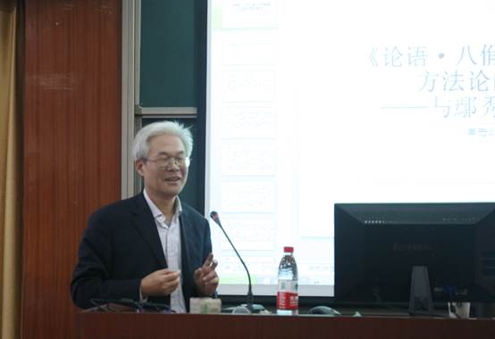 2017年11月24日上午,南京大学蔡新乐教授应邀做客外国语学院,并为我院师生做了一场题为“ 《论语·八佾》 第八章的解经方法论的初步探讨——与鄢秀、郑培凯商榷”的讲座。讲座由翻译系的胡德香教授主持,华先发教授、部分老师以及许多对《论语》和翻译感兴趣的学生参加了此次讲座。 首先,胡德香教授对蔡新乐教授的到来表示热烈的欢迎,并介绍了蔡教授的研究领域和诸多学术成就。接着蔡教授从自己招收博士生的试卷谈起,他强调当代人要多研读中国传统经典,注重提高文化修养。然后蔡教授着重和到场师生们分享了他对《论语·八佾》 的理解与英译。 蔡教授主张用儒家等中国思想来解读中国文化经典。在讲座过程中,蔡教授引经据典,从绘画方面“素”和“绚”的关系理解,延伸到人生哲学的探讨。他指出,“绘事后于素”、“素以为绚”实际上突出了儒家“仁先礼后”的主旨思想,而“仁在内,礼在外”,也正是做人的道理。“素”是一种品质,是根本,人要在纷繁世界中保持初心。 蔡教授不仅对《论语》进行了详细解读,而且在研究、学习和做人方面分享了他的宝贵经验。他指出,译者在翻译中国经典之前必须对其进行详细解读,正确处理解经者和译者之间的关系。在论文撰写过程中,要广泛阅读书籍,勤查文献,正视和自己对立的观点。同时他强调,研究者要有批判精神,以前的例子再多不一定对,关键在于思想路子是否正确。 蔡教授平易近人,所讲的内容深入浅出,由点及面,对学生们今后的学习研究和人生定位有非常大的帮助。讲座结束时,在场的师生给予了蔡教授最热烈的掌声以表谢意。
