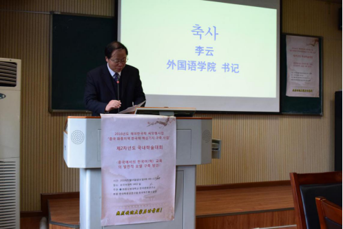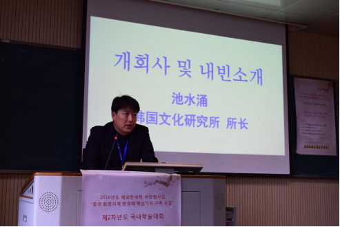 大会开幕,李云书记为大会致辞,他表示希望将我校的韩国文化研究所打造成国内一流的韩国文化研究所,并预祝此次大会圆满成功。接着,韩国文化研究所所长池水涌教授上台致辞,总结了去年一年韩国文化研究所所取得的成果,并希望韩国文化研究所越办越成功。