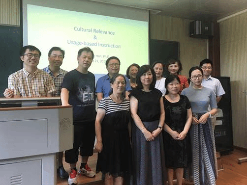 韩教授认为,文化是应用语言学领域和二语习得领域的重要概念,是一个多元化构成,它涵盖五个方面,即符号(symbols)、语言(language)、规范(norms)、价值观(values)和载体(artifacts)。韩教授通过对比中英语境中的一些表达,展示了在二语习得与教学中文化与语言的紧密关系。她指出,第二语言学习者在学习语言时,应同时学习语言的形式(form)、意义(meaning)和使用(use),因此第二语言教学应采用基于运用的教学方法(usage-based instruction), 而不只是拘于传统式以教师为中心传授语言知识的教学模式。韩教授还分析了基于运用的外语教学方法的七个原则。 讲座结束后,韩教授与教师们就文化与二语教学的相关问题进行了热烈的讨论。本厂学术活动是韩教授受聘我校客座教授后的首场讲座,大家期待将来有更多的机会与韩教授进行学术交流与合作。