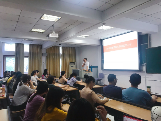 9月3日下午,2017级教育硕士实习动员大会在我院3319教室成功举办。外国语学院王勇副院长、教师教育研究中心主任闫春梅教授、校内指导老师徐泉、文斌、翁德琼、李正林、向宗平、余波、邹春燕以及校外指导教师代表粮道街中学党政办公室主任张连霞老师参加了本次大会。大会由2017级教育硕士彭艳华主持,王勇院长、闫春梅、张连霞以及2017级教育硕士王静代表致辞。