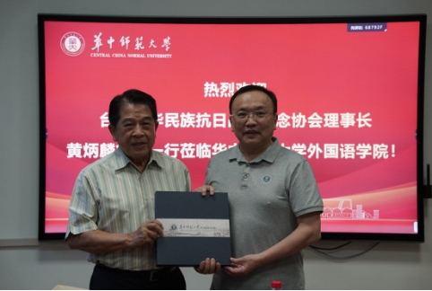 8月22日下午,台湾中华民族抗日战争纪念协会理事长黄炳麟、副理事长何世同一行来到我院参访,座谈会在学院二楼会议室进行。华中师范大学党委书记夏立新、学校办公室主任刘宏达、港澳台事务办公室副主任彭韬、外国语学院副院长、翻译与传播研究中心主任苏艳、英语系主任方幸福、港澳台事务办公室职员刘方、英语系2023级辅导员张志彬等参加座谈。座谈会由学院党委书记麻旎主持。