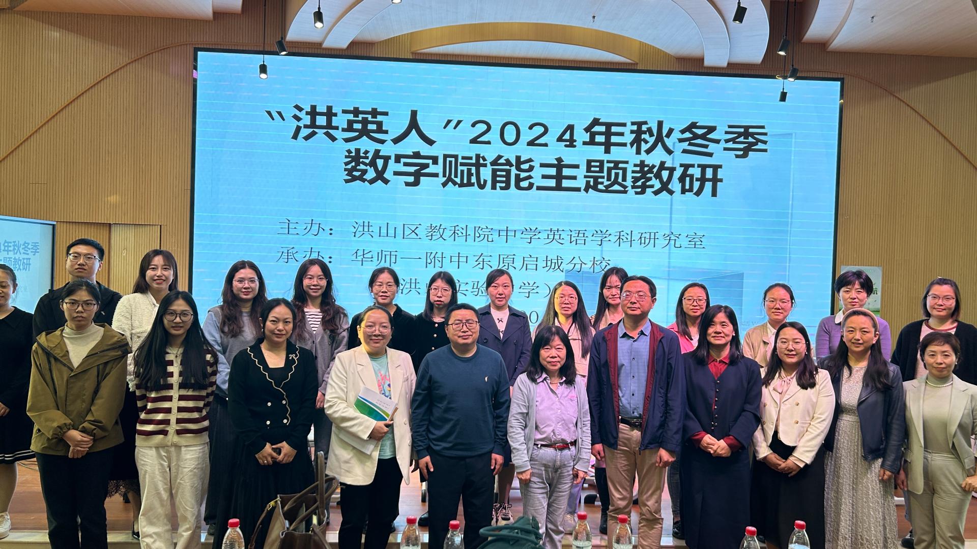 2024年10月30日,学院外语教育研究中心团队受邀参与洪英人2024年秋冬季数字赋能主题教研活动”。该活动由洪山区教科院中学英语学科研究室主办,洪山实验中学承办,旨在深入探索数字化技术在英语课堂中的创新应用与实践路径。外语教育研究中心主任闫春梅教授携中心成员范玉梅、余波、邹春燕、杨世玉等教师,与洪山区中学英语教研员陈世强老师、华中师大一附中初中部彭静老师及众多洪山区初中英语教育工作者共同出席并深入研讨。