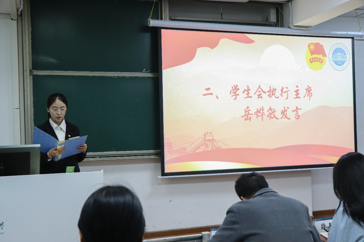 会议伊始,与会成员齐唱中国共产主义青年团团歌。随后,学生会执行主席岳烨敏发言,她对各位新成员的加入表示热烈欢迎,同时提出几点建议。鼓励同学们加强思想引领,坚定不移听党话、跟党走;增强服务意识、乐于奉献;同时提升工作能力,增强沟通意识、礼貌意识、榜样意识;在兼顾学习与工作中,保持热爱初心,携手砥砺前行。
