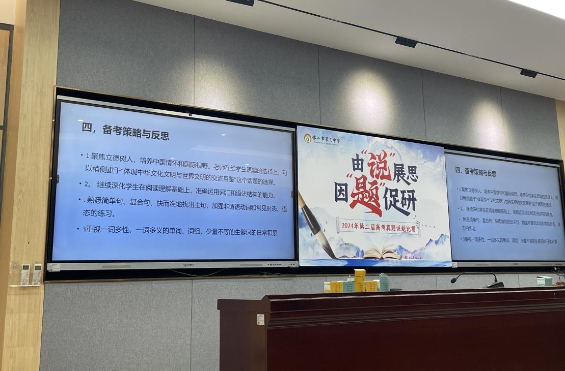 我们观摩了学校组织的“由说展思,因题促研”高考真题说题比赛,了解了说题的基本步骤,如联系课标,分析试题育人导向;总结过往同类考题,分析解题步骤;反思教学,提供备考策略。