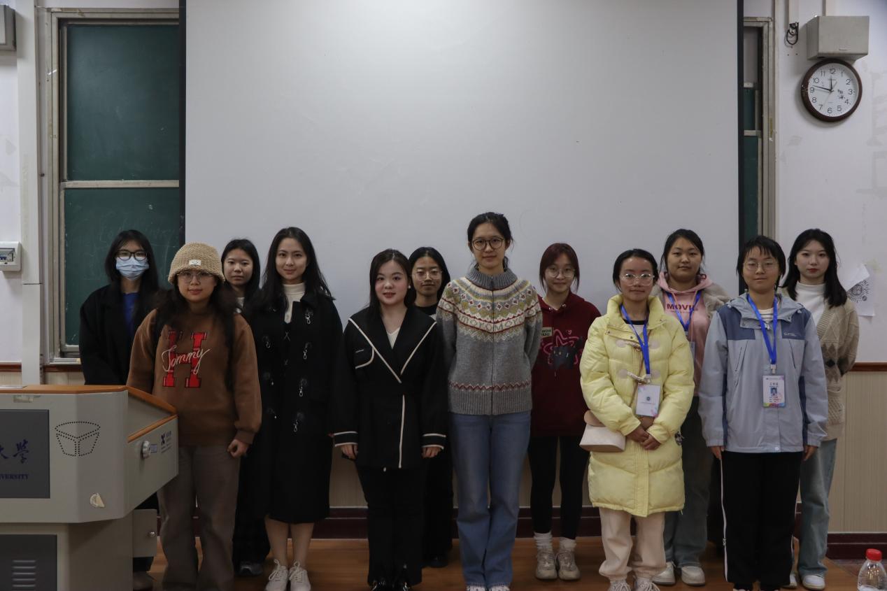 邵可涵的分享让大家受益匪浅,在提问环节,同学们踊跃发言,就四级听力与高中听力跨度大、大英赛和六级考试如何分配时间、真题如何刷、听力如何克服慌乱感等方面进行提问。邵可涵耐心解答,为同学们出谋划策,指点迷津。提问结束后,全体工作人员与邵可涵合影留恋。